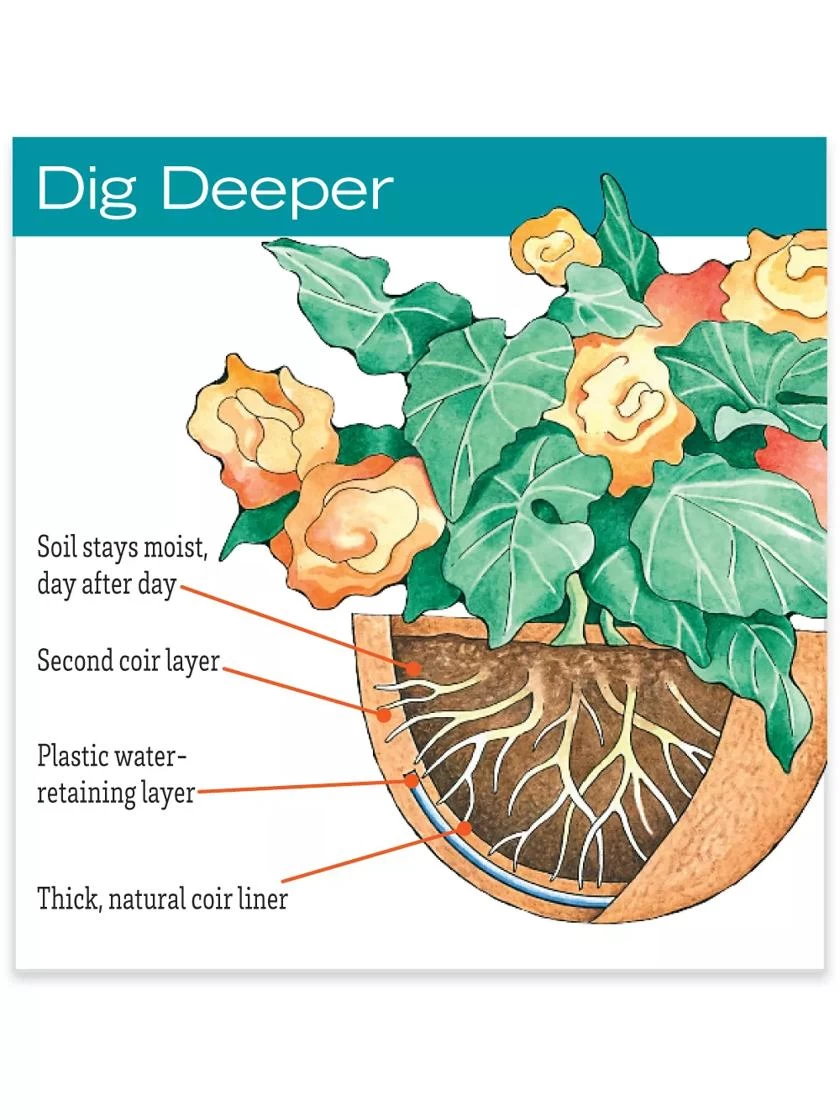 • Natural coir liner contains a water-retaining layer