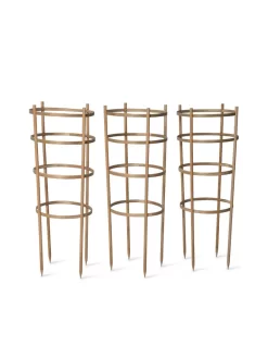 Give determinate tomatoes unwavering support, with 3 stylish and sturdy cages that rise nearly 40” from the ground when staked. Made from sustainable bamboo, these cages are beautiful in their simplicity, giving your garden a natural look and letting the vibrant reds and greens of your successful tomato plants take center stage. 4 tiers of hoops support your tomato plants until they are loaded with leaves and flush with fruit. Works equally well in containers or in-ground plantings. Over time, bamboo naturally weathers to a silvery gray, without degrading its strength. Apply polyurethane or another protective coating to maintain the bamboo’s initial appearance.