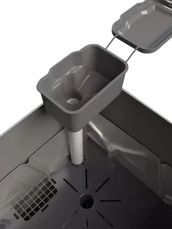 Try no-bend patio gardening in sleek grey metal. This sturdy planter has an inner reservoir, with easy-fill tube and water level indicator, to ensure maximum root hydration — even in steamy hot weather. Add an optional trellis (sold separately) and grow your favorite tomatoes, peppers, or eggplant.