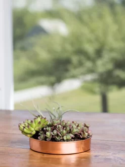 - Handsome, solid copper tray dresses up potted plants and protects surfaces