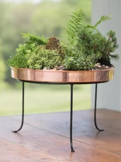 - Handsome copper tray dresses up potted plants and protects surfaces