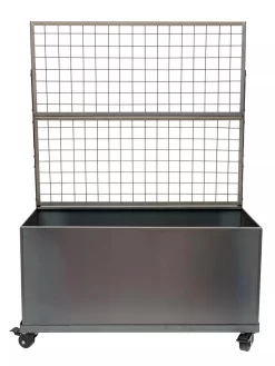 The corten planters fits in a trellis frame which has two welded wire screens. The welded wire screens provide a space for climbing plants or hanging planters. You can also choose to purchase this with casters that swivel and lock.
