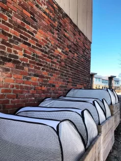 Garden row covers protect transplants from cold temperatures and chilly winds, so you can set plants out in the garden weeks earlier in spring. You’ll be amazed at how much faster plants grow — which means an earlier harvest! The top is made from mesh to allow warm air to escape, preventing overheating, and it also lets water in. Made from durable, reinforced greenhouse fabric. Sets up in seconds; flattens for easy off-season storage. Loops at the base let you anchor it to the ground with Earth Staples, sold separately.