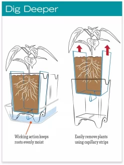 - Capillary strips keep roots hydrated