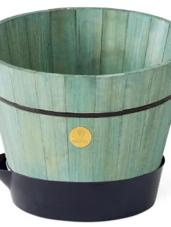 Wooden whiskey barrels have long been favored as planters and while they look great, they don’t have good drainage — if they’d drained all that whiskey out it would have been a problem, right? And poor drainage then leads to rotten wood and plant roots. This innovative barrel planter from VegTrug® keeps the traditional aesthetic we love, but adds a vented polypropylene base that not only promotes drainage but also allows water to wick up thorough the soil from the saucer reservoir. Crafted from sustainably sourced Forestry Stewardship Council-certified wood.